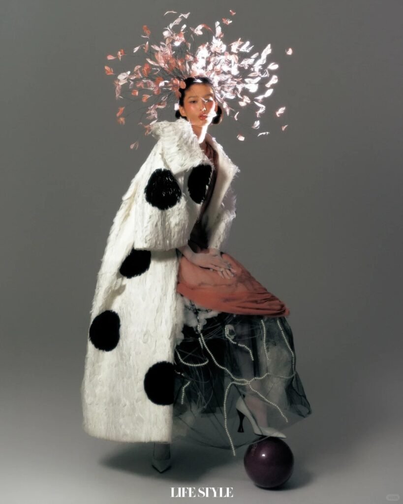 Grateful to Yang Chaoyue for interpreting the red eco-fur overcoat with bell cuffs from Maggie Wang’s 2025 A/W Haute Couture Collection for her birthday celebration.