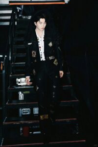 Grateful to Huang Zihongfan for interpreting the Black Lace Layered Tuxedo Jacket, Black Lace Layered Tuxedo Trousers and Positioned Black Lace Veil from Maggie Wang 2025 Autumn/Winter Haute Couture Collection on stage at the Shenzhen stop of his 2025 Happiness Only Tour Concert.