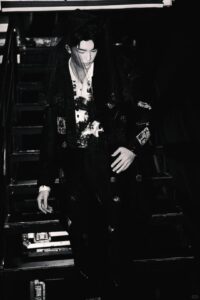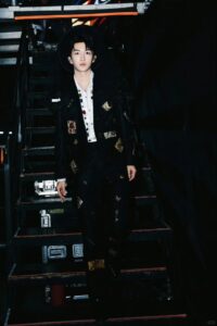 Grateful to Huang Zihongfan for interpreting the Black Lace Layered Tuxedo Jacket, Black Lace Layered Tuxedo Trousers and Positioned Black Lace Veil from Maggie Wang 2025 Autumn/Winter Haute Couture Collection on stage at the Shenzhen stop of his 2025 Happiness Only Tour Concert.