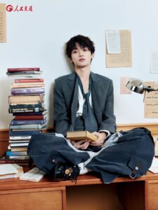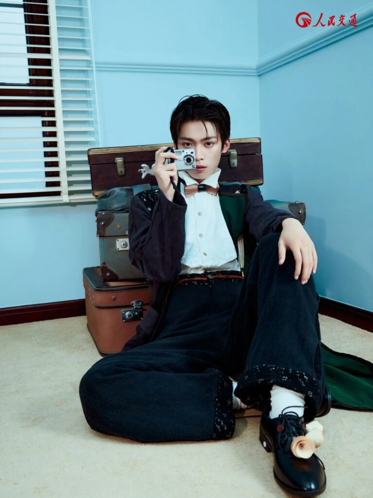 Grateful to Zi Yu for interpreting the Black and White Feather Polka Dot Coat, White Cowl Neck Satin Blouse, Buttoned Leather Shoes, Wooden Butterfly Bow Tie and Wooden Curly Floral Leather Shoes from Maggie Wang’s 2025 Autumn/Winter Haute Couture Collection on the cover of People’s Transportation Magazine.