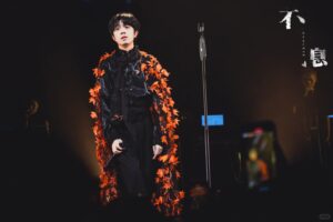 Grateful to Jiang Yunsheng for interpreting the Maple Leaf Sheer Black Tulle Cape from Maggie Wang’s 2025 Autumn/Winter Haute Couture Collection on stage at his 2025 Unceasing New Album Tour.