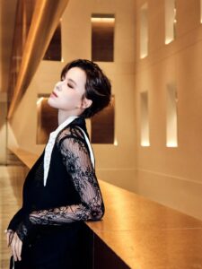 Grateful to Sunnee Yang Yunqing for interpreting the Black and White Pearl Plum Blossom Tuxedo Blazer, Black and White Pearl Plum Blossom Tuxedo Trousers and Black and White Panelled Pointed-Collar Lace Blouse from Maggie Wang’s 2025 Autumn/Winter Haute Couture Collection at the Weibo Cultural Exchange Night.