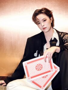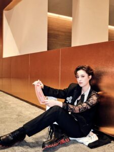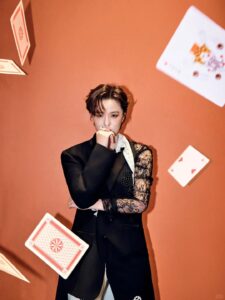 Grateful to Sunnee Yang Yunqing for interpreting the Black and White Pearl Plum Blossom Tuxedo Blazer, Black and White Pearl Plum Blossom Tuxedo Trousers and Black and White Panelled Pointed-Collar Lace Blouse from Maggie Wang’s 2025 Autumn/Winter Haute Couture Collection at the Weibo Cultural Exchange Night.