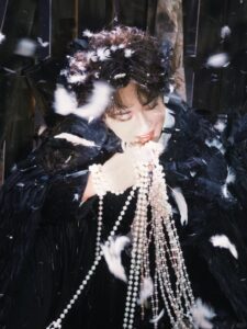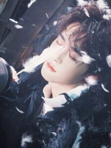 Grateful to Tian Jiarui for his charming interpretation of the Raven Half-Cape Black Feather Coat from Maggie Wang’s 2025 Autumn/Winter Haute Couture Collection.