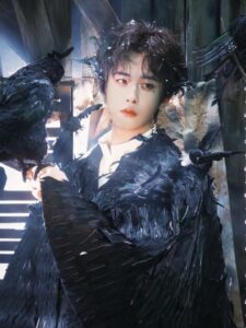 Grateful to Tian Jiarui for his charming interpretation of the Raven Half-Cape Black Feather Coat from Maggie Wang’s 2025 Autumn/Winter Haute Couture Collection.