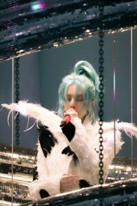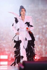 Maggie Wang | Special Custom for Hua Chenyu Grateful to Hua Chenyu for presenting the black and white polka dot dark indigo feather tailcoat suit from Maggie Wang’s exclusive custom collection at the 2025 Mars Concert – Chengdu stop.