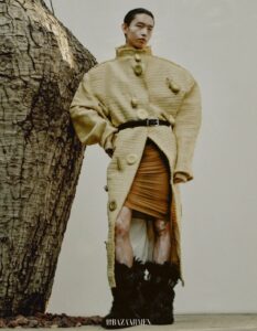Grateful to the models for interpreting the gold insect-woven overcoat from Maggie Wang’s 2025 S/S Runway Collection for @BAZAARMEN.