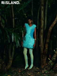 Grateful to the models for interpreting the lake blue marker tape dress and the wooden carved corset with embracing female hands from Maggie Wang’s 2026 Spring/Summer Haute Couture Collection for ISLAND Magazine.