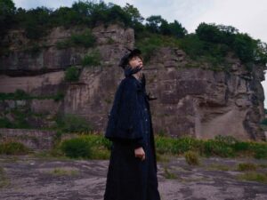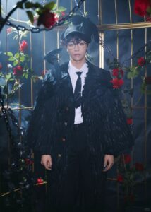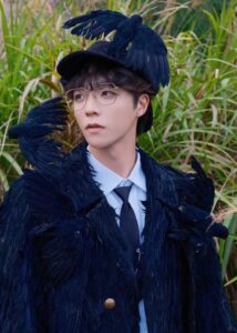 Grateful to Chen Linong for interpreting the crow half-cape black feather overcoat, black ribbon suit trousers, crow beret and chain tie from Maggie Wang’s 2025 A/W Haute Couture Collection on stage at the Ningbo stop of the In the Name of Youth 2025 World Tour on July 19th.
