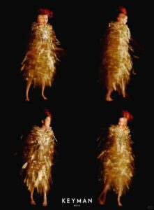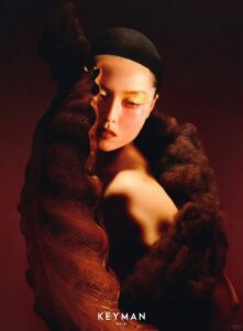 Grateful to Gu Xue @GuXueLucky for interpreting the pieces from Maggie Wang’s Spring/Summer 2025 Runway Collection on the cover of KEYMANmagazine – including the sleeveless dress adorned with rosewood feather embellishments, the sleeveless dress with golden gift box ribbon details, and the sleeveless dress with red gift box ribbon details.