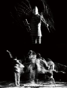 Grateful to Ling Yun, the intangible cultural heritage inheritor of Emei Wushu, for interpreting the gold insect-woven overcoat and the tailored black ribbon Zhongshan suit set from Maggie Wang’s 2025 S/S Runway Collection on the cover of @Wonderland..