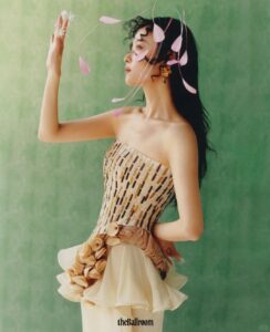 Grateful to Ni Ni for interpreting the sheer wooden scroll flower top from Maggie Wang’s 2025 S/S Runway Collection on the cover of the Vitality themed spring issue of @theBallroom.