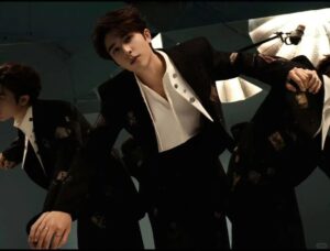Grateful to Patrick Nattawat Finkler for his charismatic interpretation of the black lace interlayer tailcoat top, black lace interlayer tailcoat trousers and white pointed-collar shirt from Maggie Wang’s 2025 Autumn/Winter Haute Couture Collection.