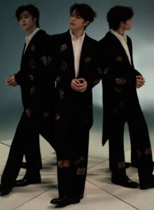 Grateful to Patrick Nattawat Finkler for his charismatic interpretation of the black lace interlayer tailcoat top, black lace interlayer tailcoat trousers and white pointed-collar shirt from Maggie Wang’s 2025 Autumn/Winter Haute Couture Collection.