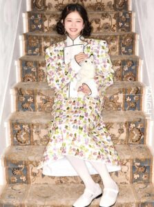 Maggie Wang’s New Neighbor | Rei Naoi Grateful to Rei Naoi for interpreting the ribbon-embroidered asymmetric button chef set top and ribbon-embroidered asymmetric button chef set skirt from Maggie Wang’s 2025 A/W Haute Couture Collection on the cover of @KNIGHT Magazine.