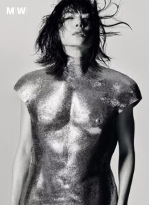 Grateful to Wu Mengke for interpreting the gold sheepskin leather-sculpted male form dress from Maggie Wang’s 2025 S/S Runway Collection on the cover of @Modern Weekly STYLE.
