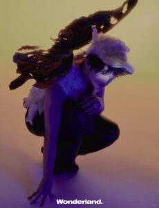 Grateful to Xu Zhenxuan for interpreting the white feather sleeveless top and white eiderdown feather cap from Maggie Wang’s 2025 S/S Haute Couture Collection on the cover of @Wonderland..