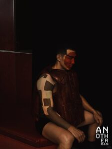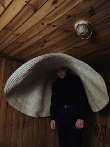 Thanks to model Shen Kaicheng and Hunter for presenting Maggie Wang’s 2025 Spring/Summer collection of blue-green double-layered checkered feather-drop waistcoat, redwood-carved sleeveless suit, and sustainable corn-stalk woven straw hat in the Chinese version of AnotherMan.