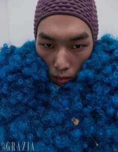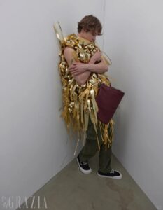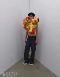 Thanks to models Liu Qinzheng, Cao Chang, Toly, and Ivans for presenting Maggie Wang’s 2025 Spring/Summer collection at the GRAZIA show, including the double-sided polyester gift ribbon belt, the blue curly-haired sleeveless top, and the golden gift box ribbon sleeveless dress.