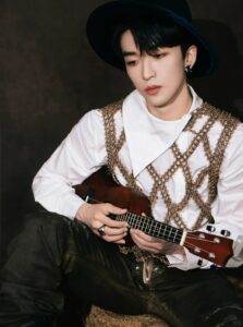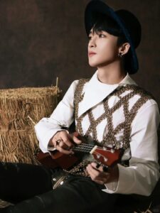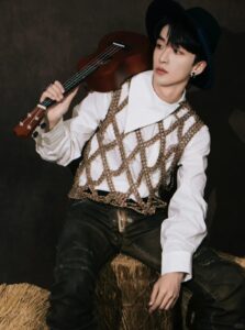 Thank you to Huang Zihongfan for his stage performance of Maggie Wang’s 2025 Spring/Summer collection featuring white French collar shirts and brown open-button tops.