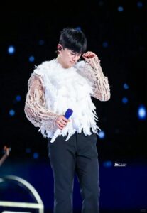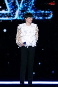 Thank you to Zhang Jie for his stage performance of Maggie Wang’s 2025 Spring/Summer runway haute couture collection featuring a white featherless sleeveless top.