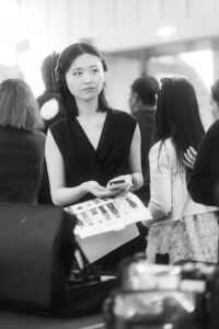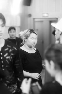 - The staff at the backstage of the fashion show were moving non-stop. The stylist bent over to meticulously adjust the skirt and accessories of the model. The makeup artist’s brushes were moving rapidly up and down. The event staff were bustling among the crowd to check the procedures. Everyone was busy while holding their posts, with their eyes full of concentration and rigor.