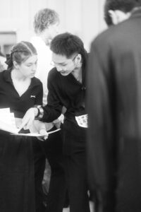 - From the meticulous makeup application to the precise clothing matching, from the orderly placement of props to the repeated confirmation of the sequence, the backstage staff remained fully alert, with their tireless figures silently laying a solid foundation for the flawless presentation of the fashion show.